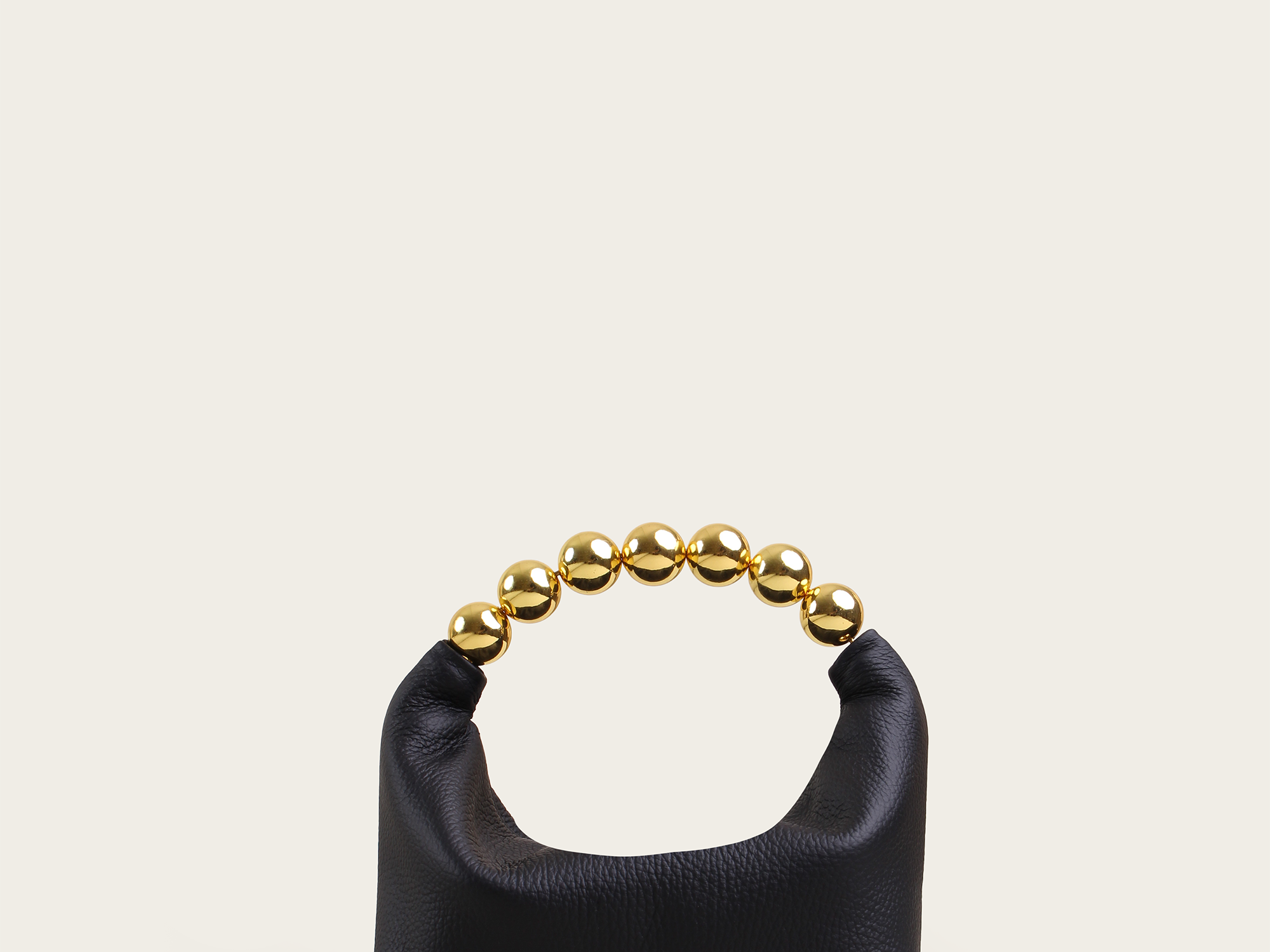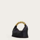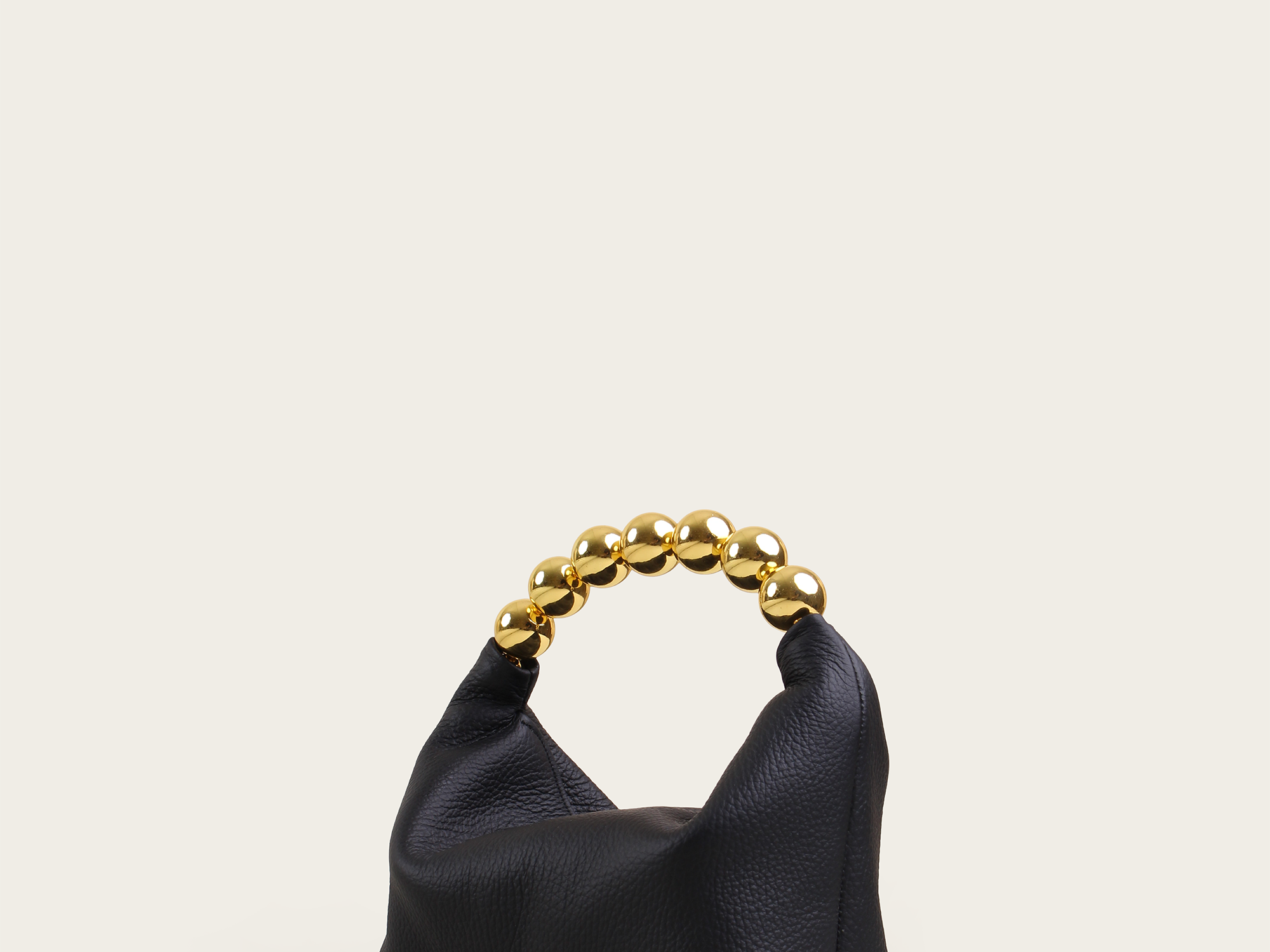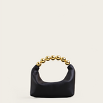 A signature Vanina piece introduced in many versions. The 'Echappe' is crafted from a soft leather in a sculptural, hollowed shape. It features a magnetic closure and comes with handle adorned with acrylic beads.