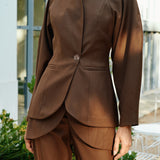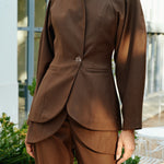 A fitted blazer with curved sleeves and a cinched waist. Wear it versatilely from the office to your night outs.