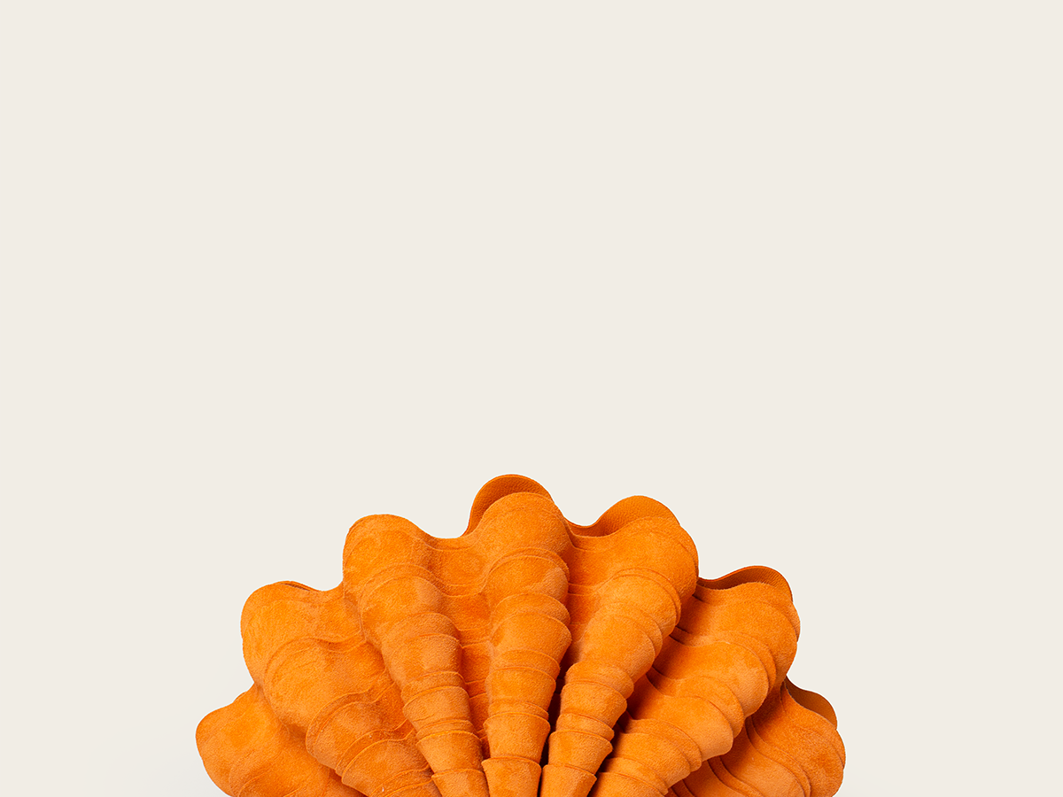 Our signature 'Sable Mouvant' piece is now introduced in Suede. It is artfully handcrafted to create a layered seashell shape, evoking a coastal charm and organic elegance.