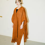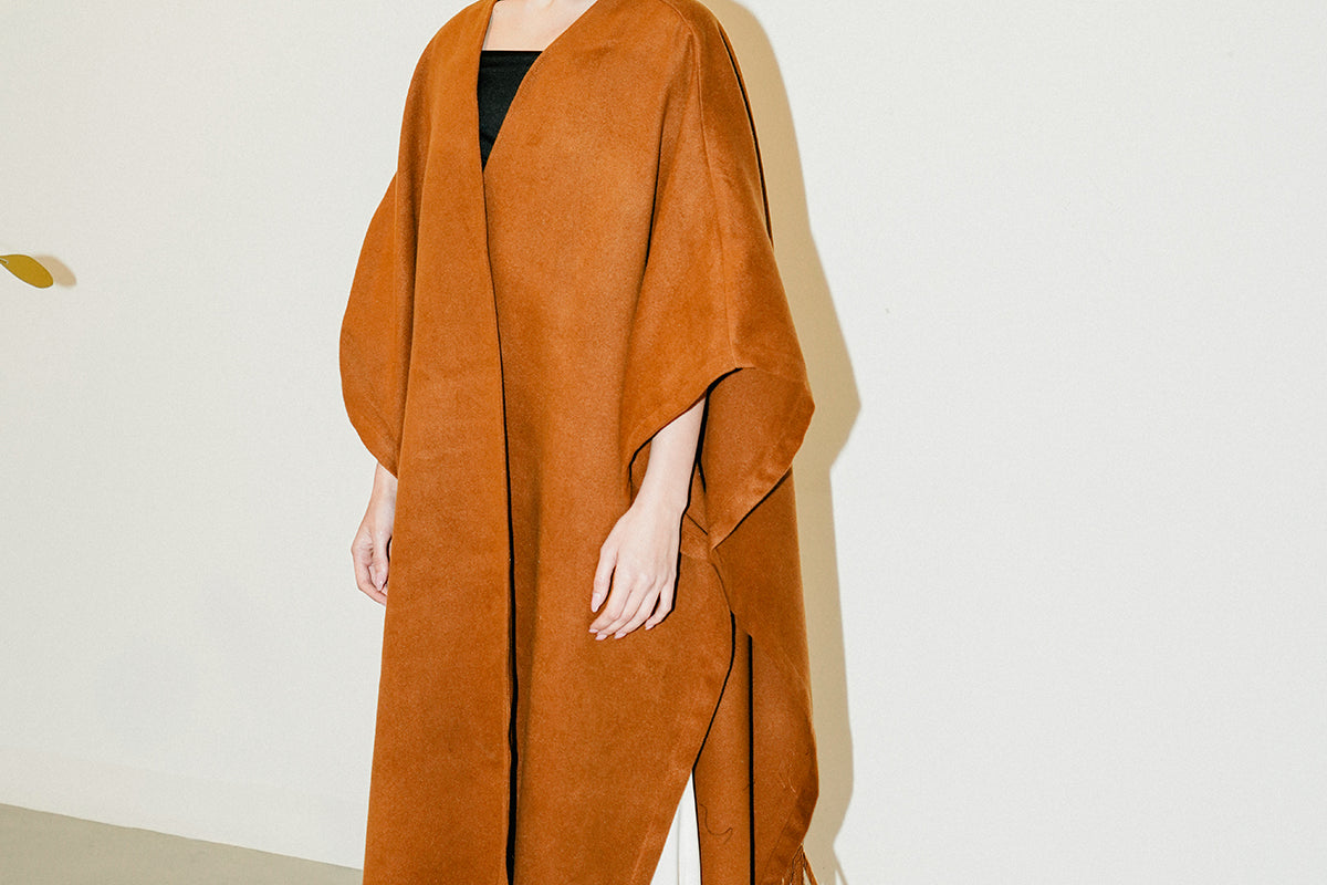 Crafted with soft wool, this embellished one-size poncho will elevate all your winter looks. It features cascading fringes at the hem.