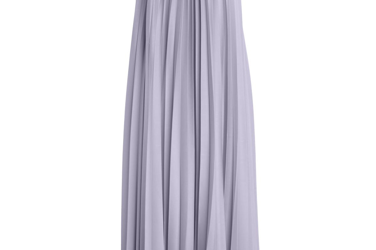 The 'Sasha dress' is a size-free piece in pleated silk with a flowy silhouette and an adjustable strap on the neck.