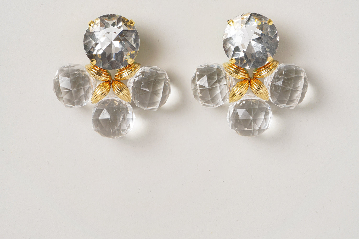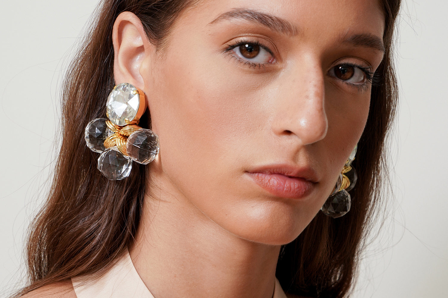 A contemporary piece that complements any dress. The 'doux galets' are clip-on earrings handcrafted with a beaming crystal and multifaceted beads.
