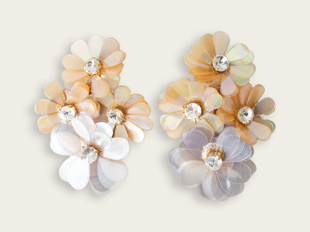 Composition: Sequins, Glass Beads, Gold Plated Brass, Crystal.