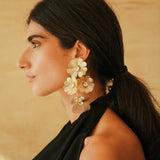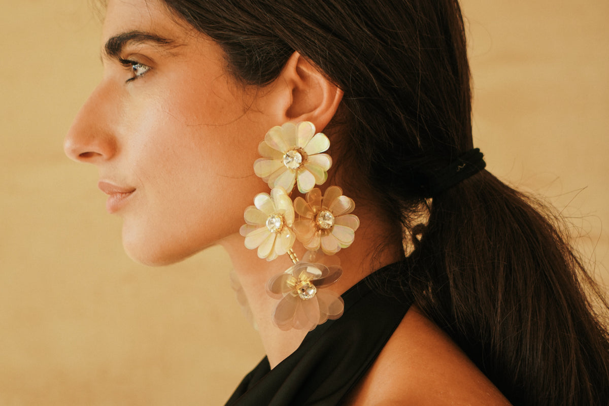 Handcrafted with iridescent light sequins, these clip-on earrings add the perfect pop of dazzle to your evening looks.