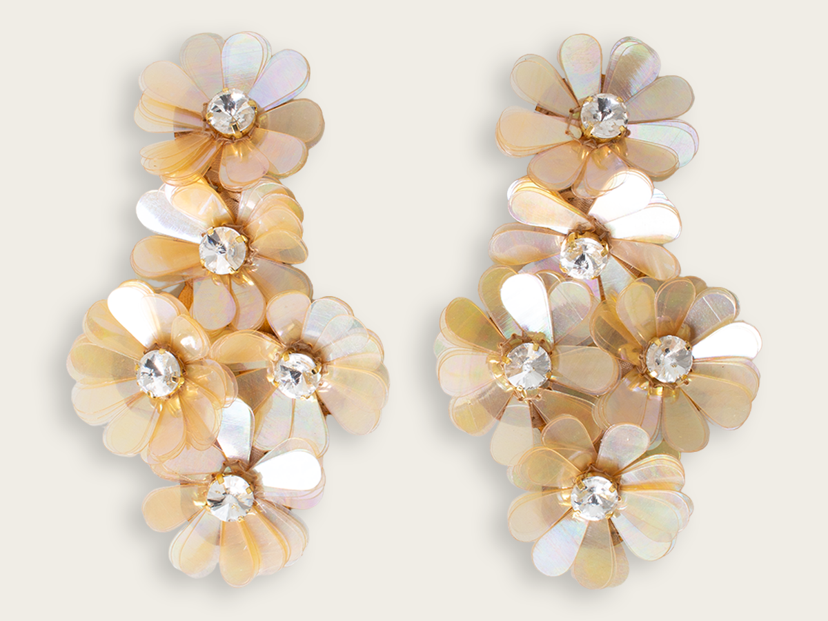 Composition: Sequins, Glass Beads, Gold Plated Brass, Crystal.