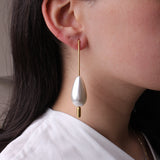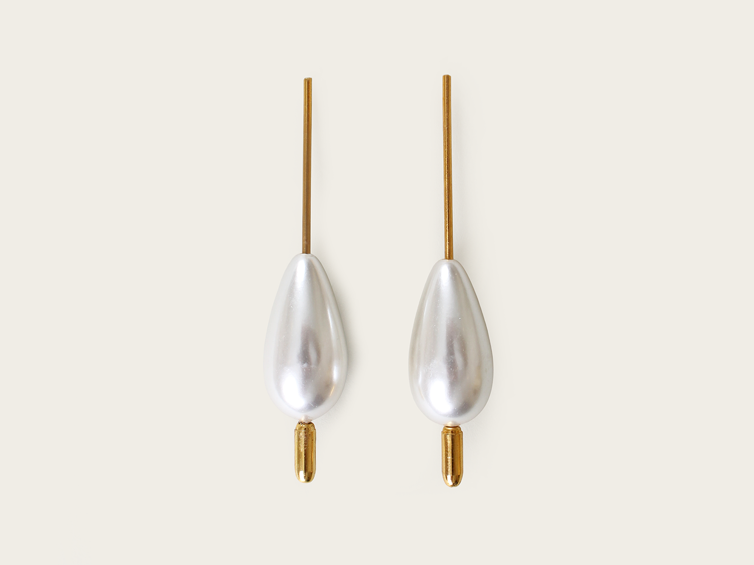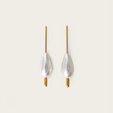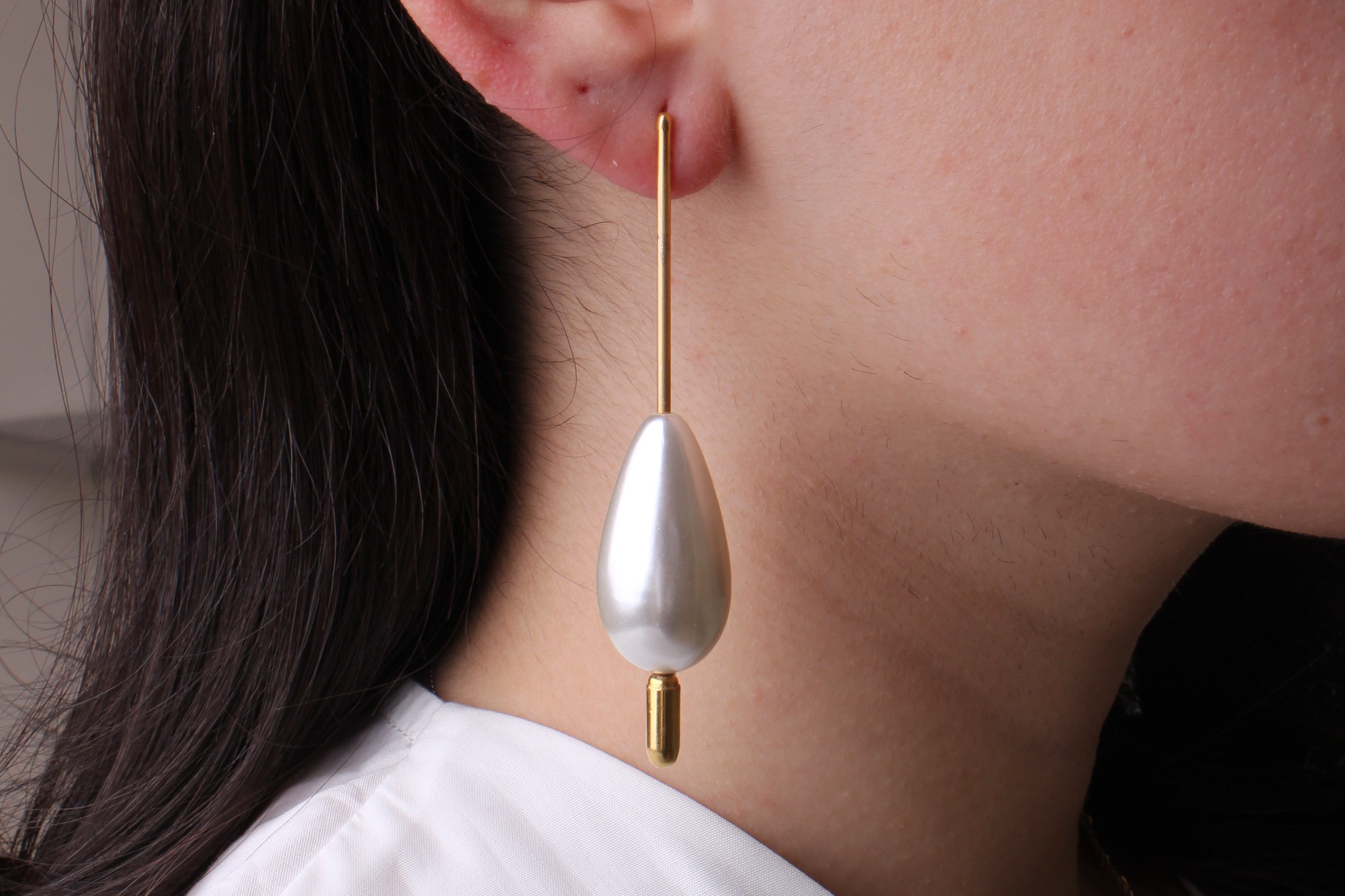 A simple and modern pair with flair. These pair of earrings are light and dangly, they are made with gold-plated brass stems that carry geometric acrylic beads.