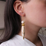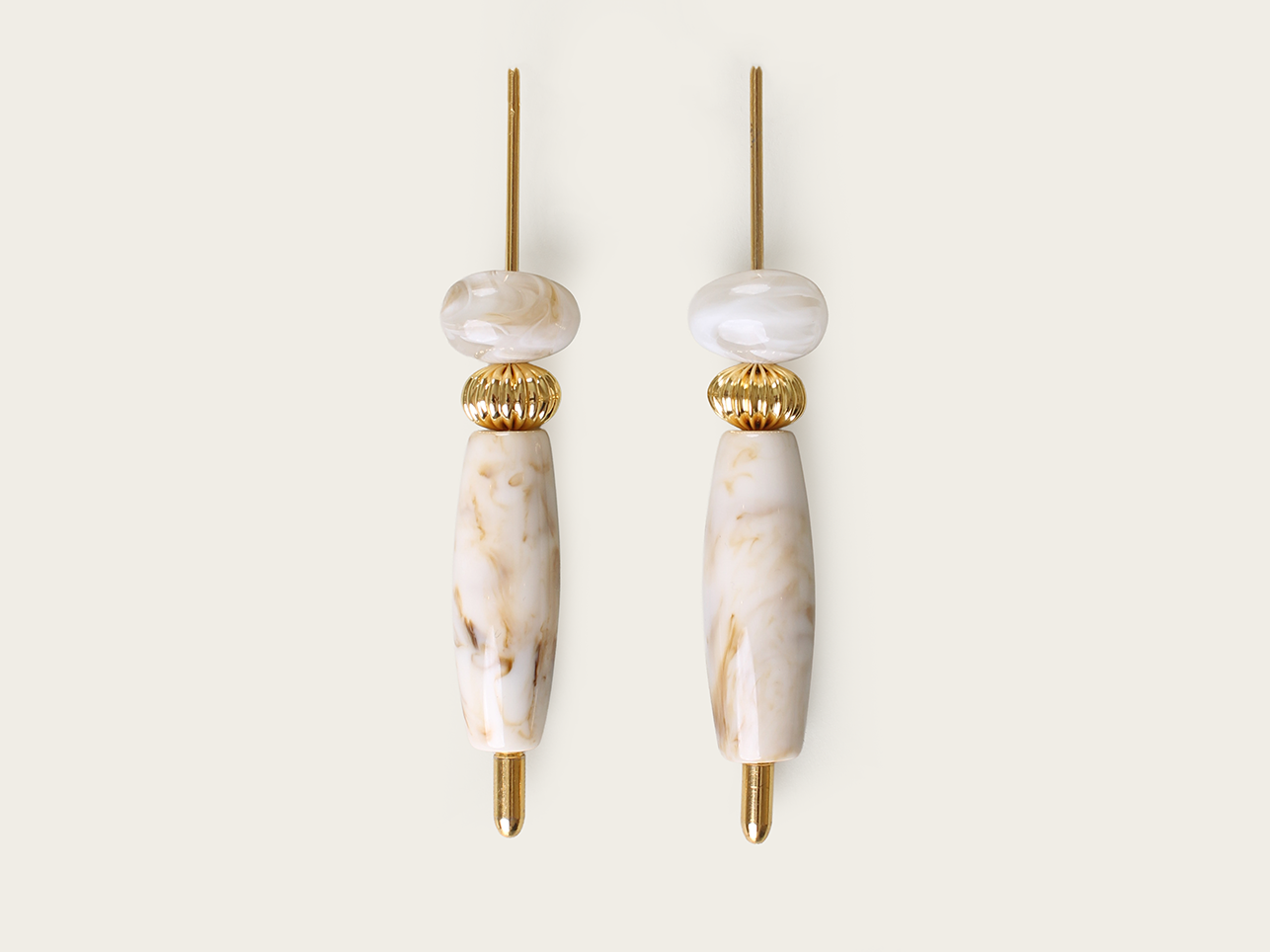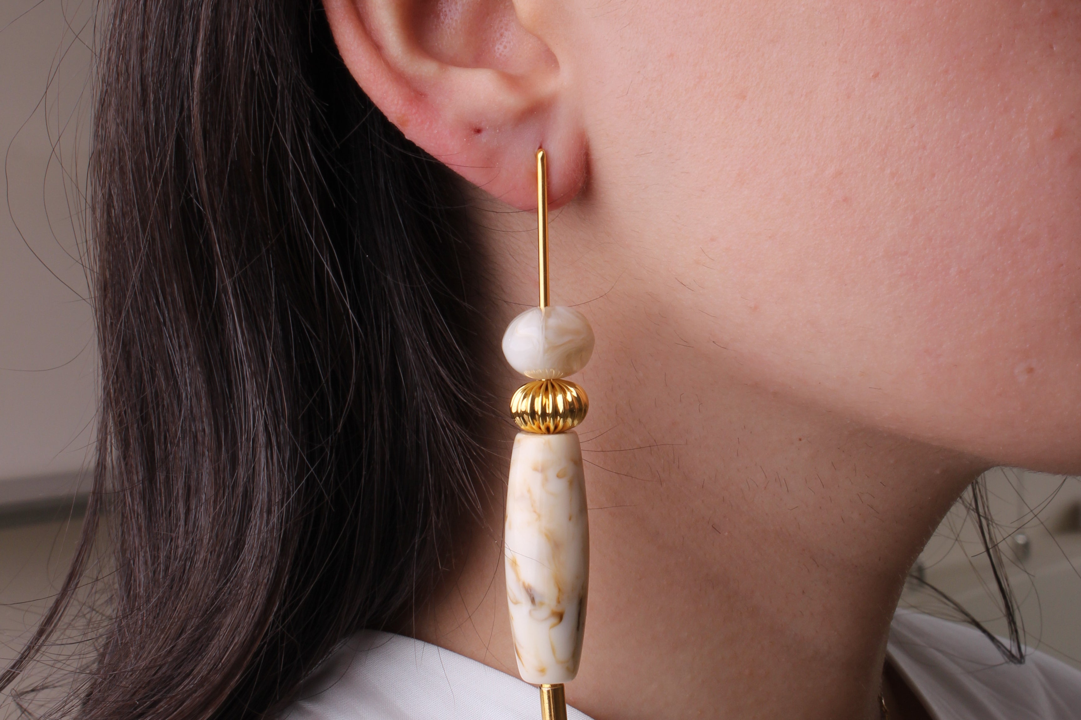 A simple and modern pair with flair. These earrings are light and dangly, carrying with geometric acrylic beads.