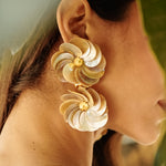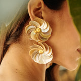 A Vanina signature design, this piece translates grace and allure. Entirely handcrafted from delicate natural shells and gold plated brass, these clip-on earrings will instantly add a statement to your looks.