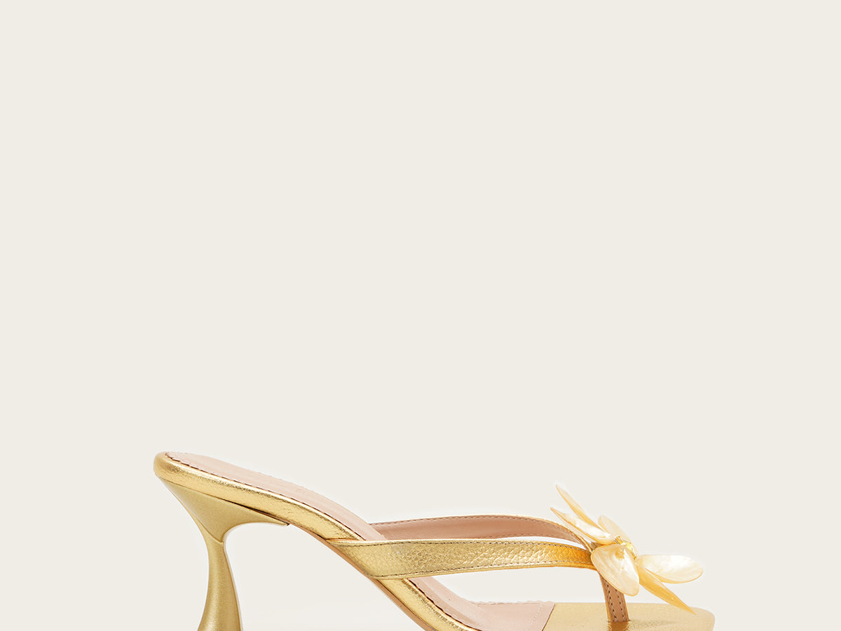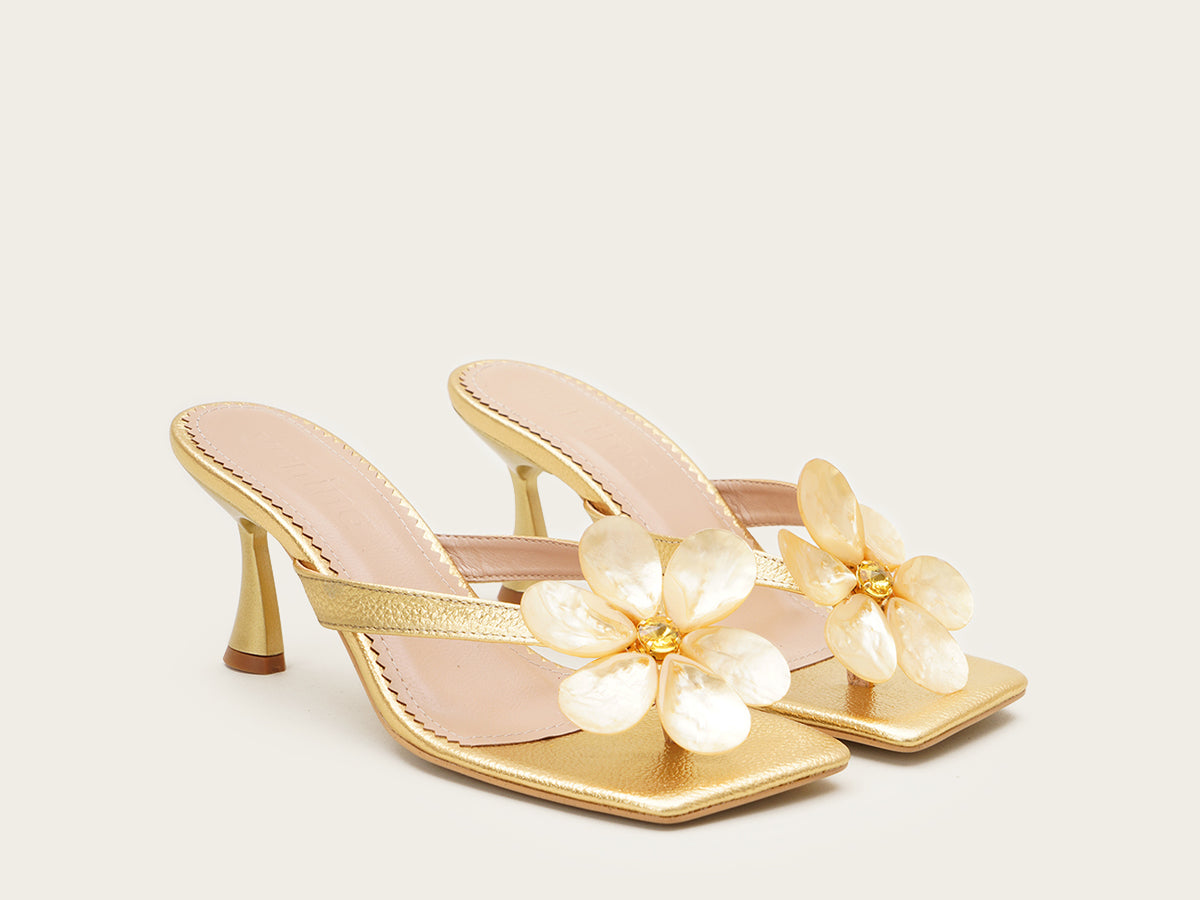 A step feels like a dream when wearing the 'Fleur Blanches Sandals'. With its fairy like flower at the center and its kitten heal, these mules will make you feel chic and elegant while still going simple.