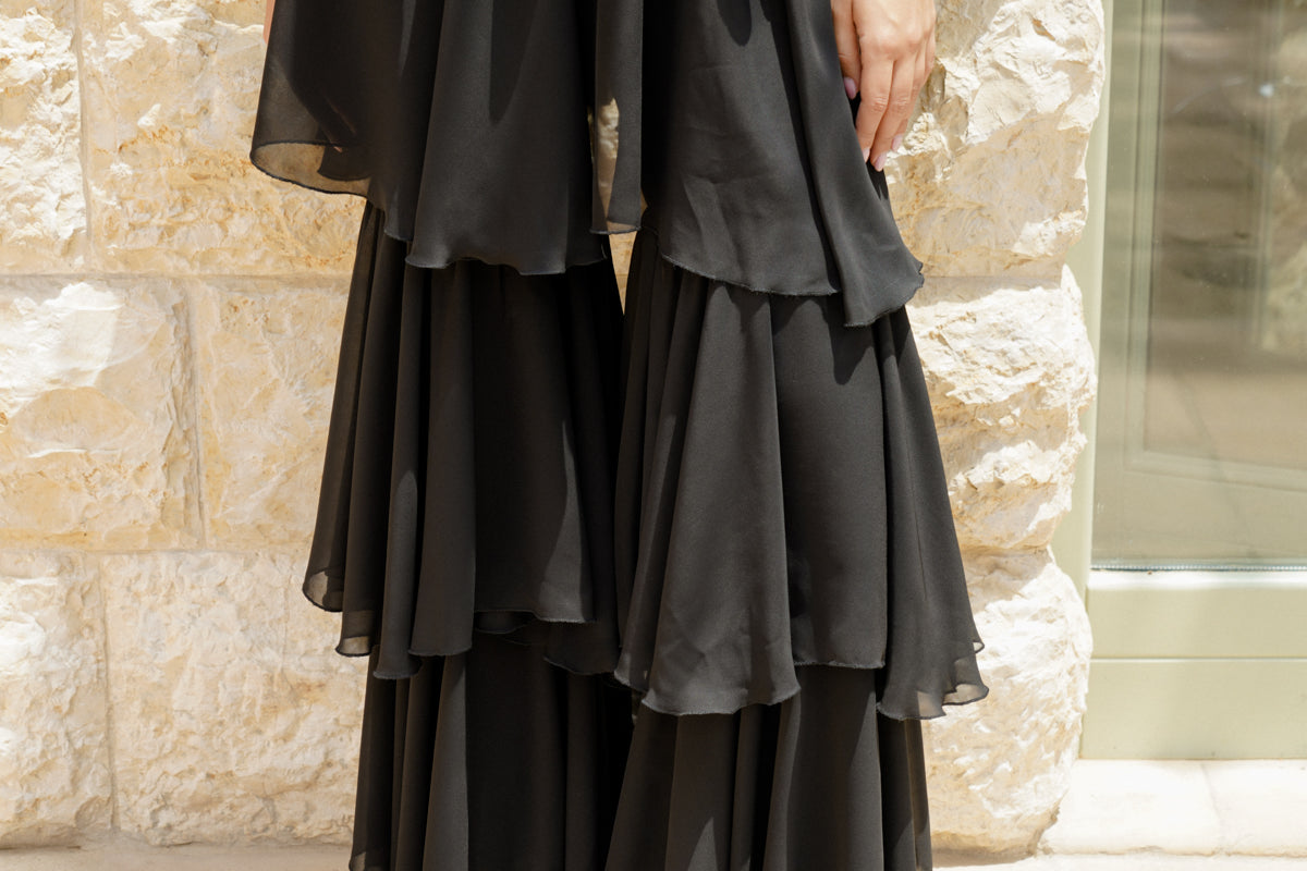 A mid-waist piece fully crafted from an airy voile material, with tiered layers that elegantly move with you.