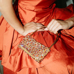 Our latest version of the 'Diademe' collection come in a wider baguette shape. It is fully handcrafted with Swarovski crystals, with a flap closure and a gold-plated handle.