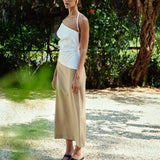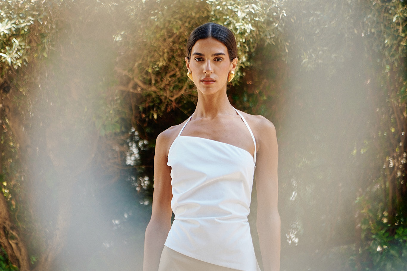 A versatile day-to-night top with an effortless feel. It's a size free piece with an asymmetrical silhouette and an open back.