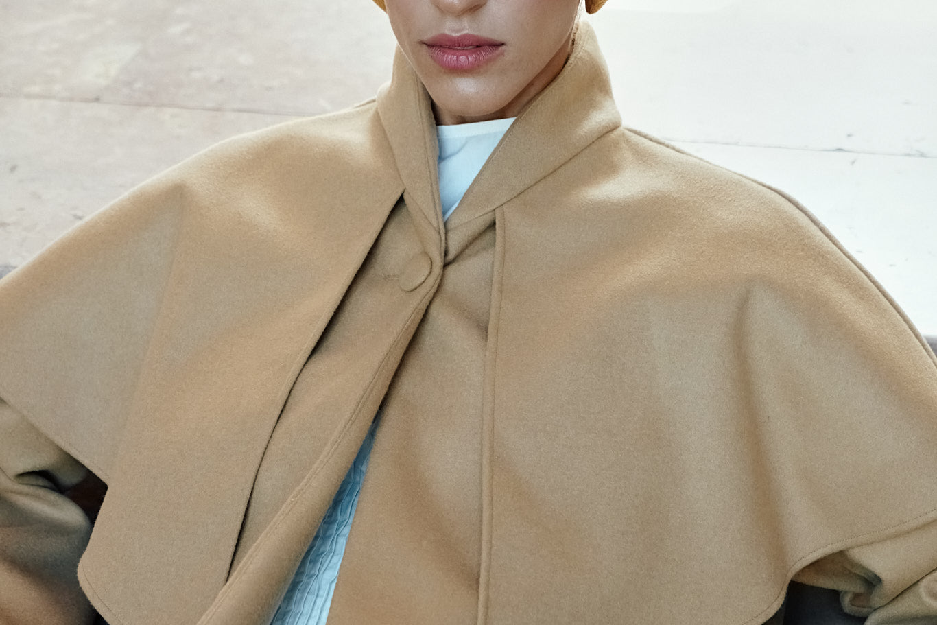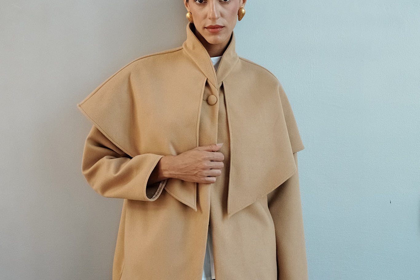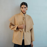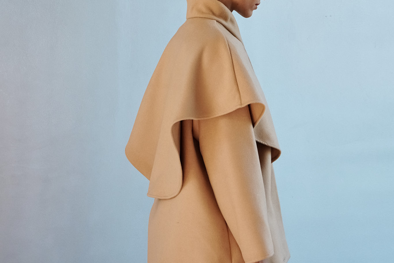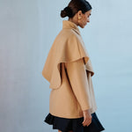 Crafted with soft wool, this cape-style jacket comes with an open collar and broad lapels, creating an oversized look.
