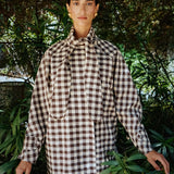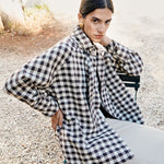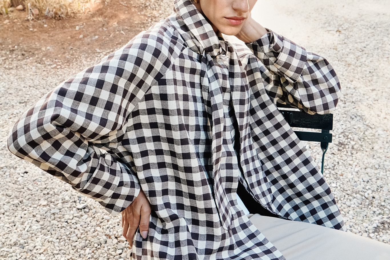 Crafted with a light linen fabric, this contemporary piece has an oversized fit with front lapels that can be tied in a knot.