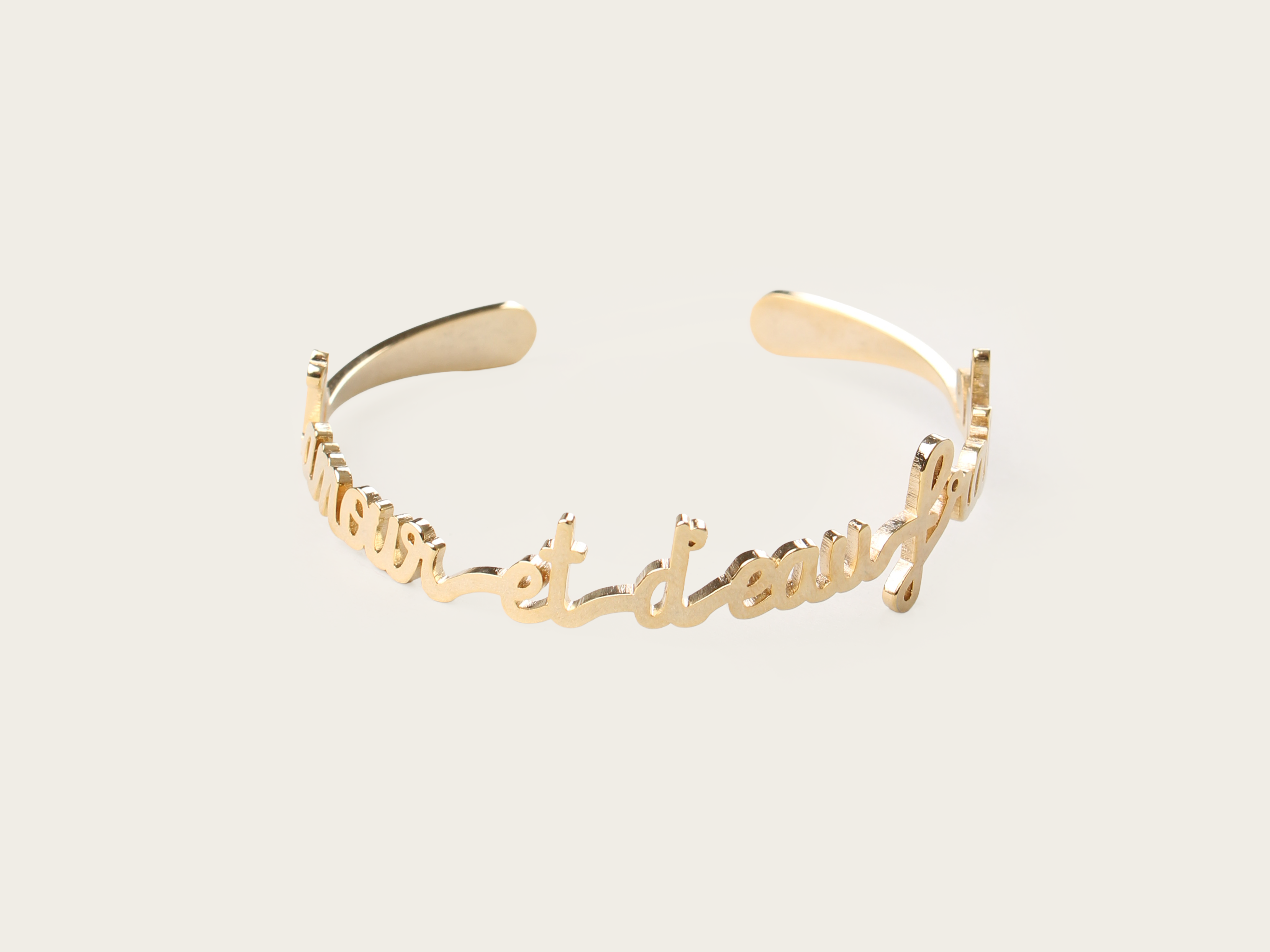 'D'amour et d'Eau Fraiche' open bracelet that will add a playful statement to your look. This piece is easily adjusted to your wrist.