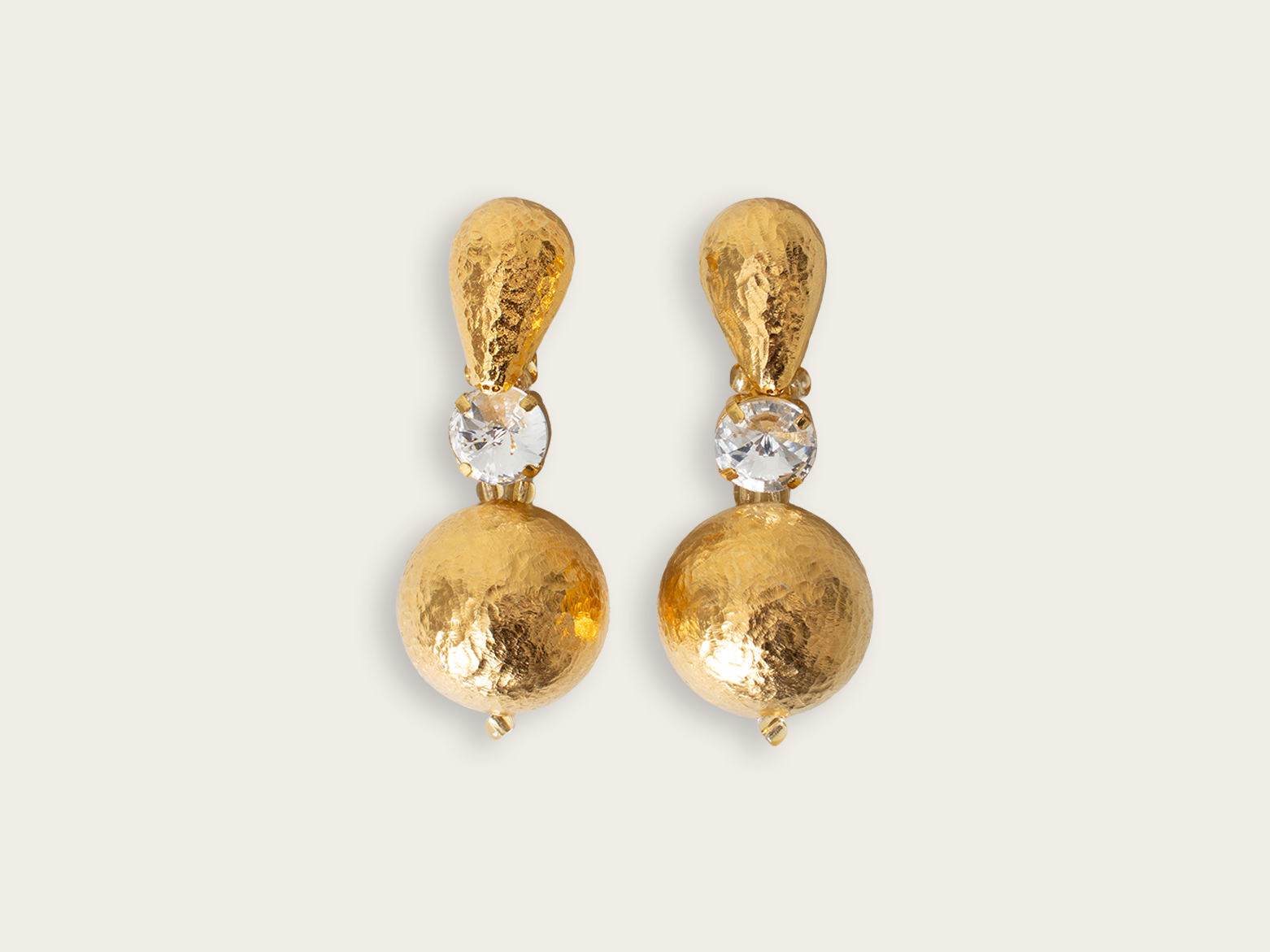 This clip-on piece is a gold-plated tear drop shape with a foil finish.