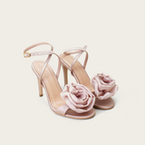 A simple and chic pair that wraps eleganly around the ankle. The 'Rose des Vents' pair is adorned with a handcrafted oversized rose.