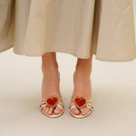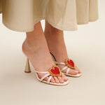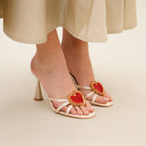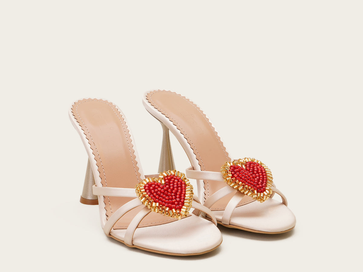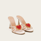Spread the love with these fun sandals. With a sleek and sophisticated heel, they come with a strapped front adorned with a beaded red heart.