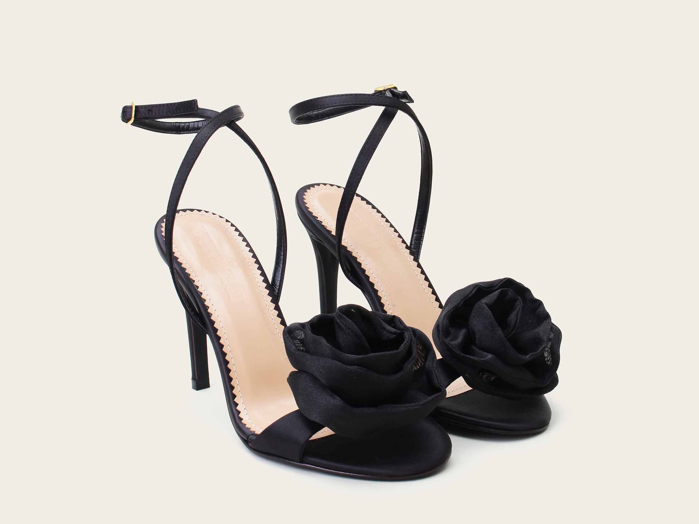 A simple and chic pair that wraps eleganly around the ankle. The 'Rose des Vents' pair is adorned with a handcrafted oversized rose.