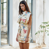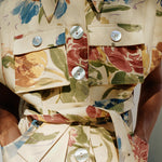 A utility-style vest crafted in a floral pattern that will freshen up your looks. With a pointed collar and two cargo pockets, this piece is adorned with oversized mother-of-pearl buttons,